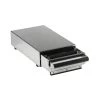 Innerhalb des PVC-Einsatzes ist die Klopfstange angebracht. Die quadratische Knock Box hat gleiche Seitenlängen von je 14 cm. Die schicke Verkleidung der Knock Box lässt sie in jeder Kücheneinrichtung gut aussehen. Auf der Vorderseite ist auf schwarzem Grund das Joe Frex Logo in Silber abgebildet.