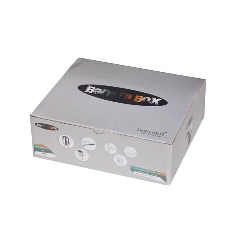 Mit der Barista Box von JoeFrex tauchen Sie ein, in die genuss- und kunstvolle Welt der Barista. Mit nützlichen Tools wie den beiden Milchkännchen mit 350 bzw. 90 ml Fassungsvermögen kreieren Sie leckere Milchkaffee-Spezialitäten wie Cappuccino, Latte Macchiato etc. Mit der Latte-Art Dosierflasche können Sie Ihrer Kreativität freien Lauf lassen und Ihre Milchkaffee-Spezialitäten nach Ihren Wünschen verzieren. Mit dem Shotglas sorgen Sie dafür, dass immer die richtige Menge an Espresso extrahiert wird. Im Set sind zusätzlich die Siebträgerbürste und die Gruppenbürste Basic schwarz enthalten, welche zwei nützliche Tools zur Reinigung sind.