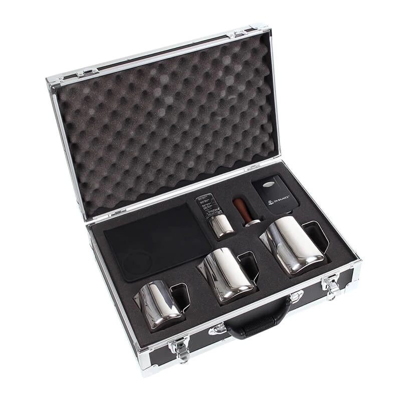 Sie sind auf der Suche nach einem kompletten Set an Barista-Zubehör? Dann ist dieser Barista Koffer genau das richtige für Sie. Der Barista Koffer von Joe Frex ist ein handlicher Begleiter für alle Profis und angehenden Baristas. Das qualitativ hochwertige Zubehör, für die optimale Zubereitung Ihrer Kaffeespezialitäten, ist praktisch und sicher in einem Koffer verstaut. Im Koffer sind alle wichtigen Tools, die von Zubereitung, Latte-Art bis zur Reinigung keine Wünsche offen lassen, vorhanden. Wenn Sie in Ihrem Bekanntenkreis einen echten Kaffeeliebhaber haben, dann ist dieser Barista Koffer das optimale Geschenk.