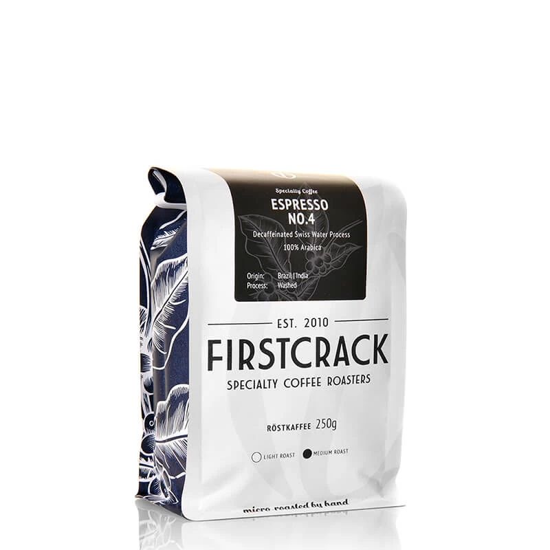 Der Espresso wurde mit größter Sorgfalt handgeröstet. Die FIRSTCRACK Roastery röstet absolute Specialty Coffees auf Spitzenniveaus und bietet herausragende Genussmomente. Auch mit dem entkoffeinierten Espresso muss auf keinerlei Aroma oder Genuss verzichtet werden.