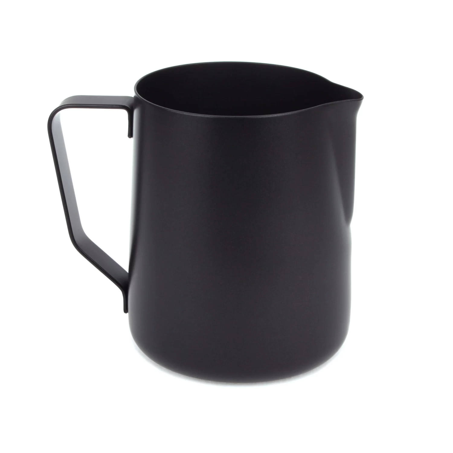 )) zum Kinderspiel macht. Außerdem ermöglicht die besondere Form der Ausgusstülle auch eine besondere Präzision beim Zubereiten eines Cappuccinos. Das Milchkännchen besteht aus rostfreiem Edelstahl und wurde mit einer mattschwarzen Teflonbeschichtung überzogen, was eine besonders leichte Reinigung ermöglicht, die 1 mm dicke Wandstärke lässt die Milch beim Aufschäumen länger kühl und erleichtert so das Bilden von feinem Milchschaum über einen längeren Zeitraum als im Vergleich zu Milchkännchen mit geringer Wandstärke. Die Handhabung des Milchkännchens ist durch den ergonomischen Griff und die ausgeglichene Gewichtsverteilung super leicht.