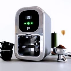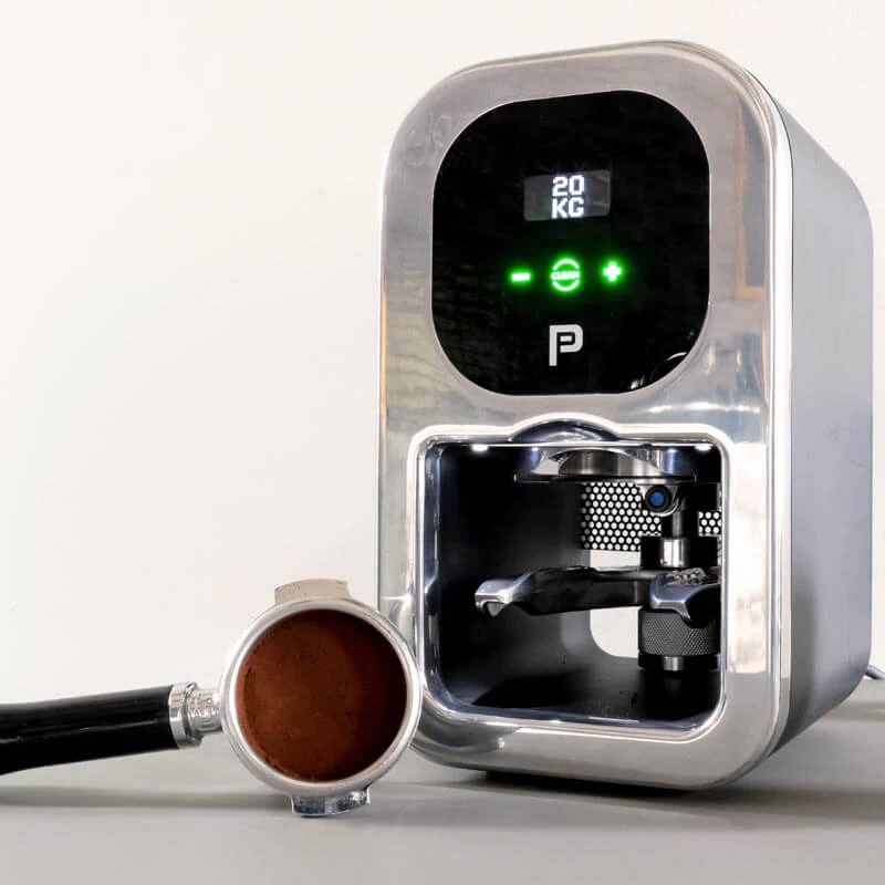 Die Marke Pocket Press bringt mit der gleichnamigen Tampingmaschine ein kompaktes Gerät auf den Markt, welches so einfach wie genial ist. Ein Sensor erkennt, sobald ein Siebträger eingeschoben ist, und die Maschine startet das Tampern, immer perfekt senkrecht und mit konstantem Druck. Über das Touch-Interface kann der Anpressdruck zwischen 10 kg und 30 kg schrittweise eingestellt und gespeichert werden.