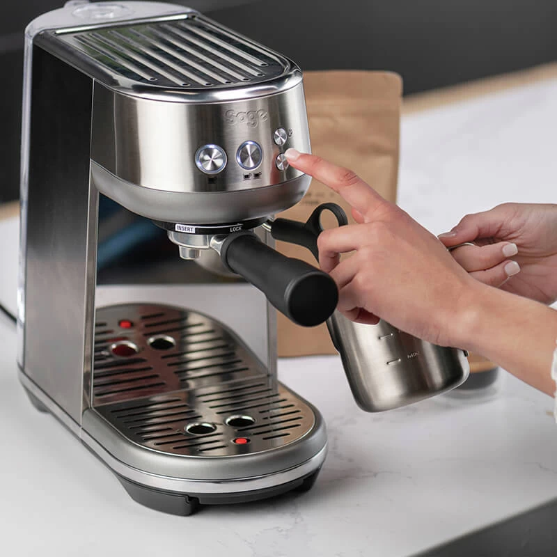 Die Bambino von Sage ist ein Einsteigermodell in die Welt der Baristas! Die Maschine hat einen 54 mm Siebträger und eine leistungsstarke Dampfdüse. So wird Mikro- Milchschaum hergestellt – perfekt für Latte Art in Barista Qualität.