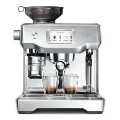 Die Oracle™ Touch ist das Flaggschiffmodell der Siebträgermaschinen von Sage. Die Kombination von Mühle und Siebträger in einem Gerät ermöglicht die Automatisierung der gesamten Espresso Zubereitung. Es benötigt 3 einfache Schritte, um perfekten Cappuccino zuzubereiten, dessen Stärke, Milchtextur und Temperatur an die persönlichen Bedürfnisse angepasst sind. Bis zu 8 personalisierte Rezepte können auf der Oracle™ Touch abgespeichert werden.