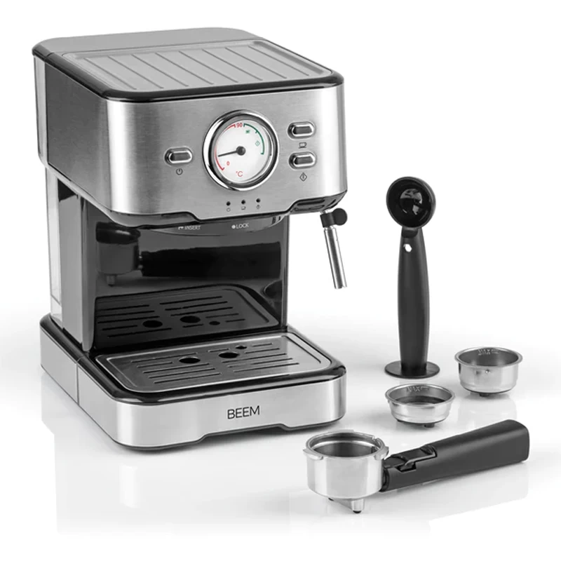 Die BEEM ESPRESSO-SELECT Siebträgermaschine ermöglicht den einfachen Einstieg in die Welt der heimischen Espressozubereitung. Mit der ESPRESSO-SELECT lassen sich im Handumdrehen Espressi und Milchmischgetränke wie Cappuccino oder Latte Macchiato zubereiten. Die ESPRESSO-SELECT punktet mit ihrer einfachen Bedienung und einem eingebauten Thermometer. Dank des Thermoblocks ist die Maschine schnell einsatzbereit und vergleichsweise energieeffizient.