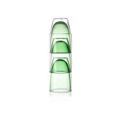 Bei den Stack Gläsern ist der Name Programm. Entworfen vom renommierten Designer Georg Fontana, hat das äußere Glas eine Kante, unterhalb derer der Durchmesser kleiner ist. Dadurch lassen sich vier bis fünf Gläser ineinanderstecken und stapeln. Bei dieser Variante des Glases ist die innere Glasschicht grün eingefärbt, was jedes Getränk in Szene setzt und in Kombination mit der Farbe des Inhalts spannende Farbspiele ergibt.