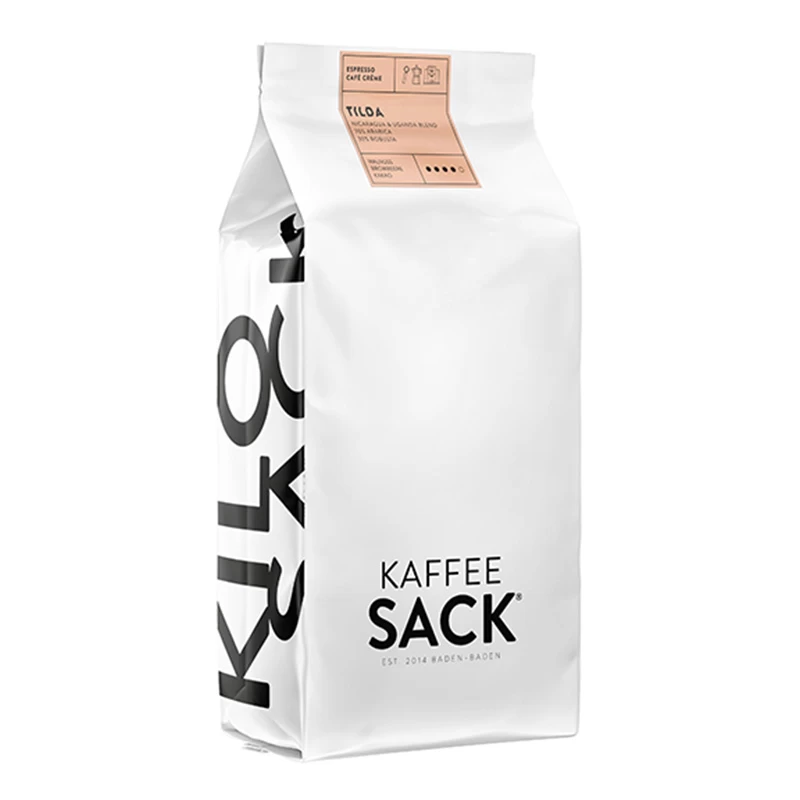 Bei der 1000 g Packung hält sich die Rösterei zwar eher zurück, doch durch den Aufdruck der Typografie „Kilosack“ und „Kaffeesack“ braucht sich auch diese Mischung nicht verstecken und passt somit perfekt in das auch sonst außergewöhnliche Portfolio der Rösterei Kaffeesack. Die Rösterei Kaffeesack besteht seit 2014 und hat ihre Manufaktur in Achern, Baden-Württemberg.