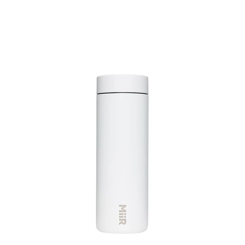 Von außen ist der Edelstahlbecher von MiiR mit einer robusten Hardshell Pulverbeschichtung versehen, welche den Traveler in schönem Weiß erstrahlen lässt. Der Becher sollte stets von Hand ausgespült werden. Auf der Unterseite tragt der Becher einen Give Code, mit welchem sich die sozialen Projekte verfolgen lassen, die durch den Kauf unterstützt werden.